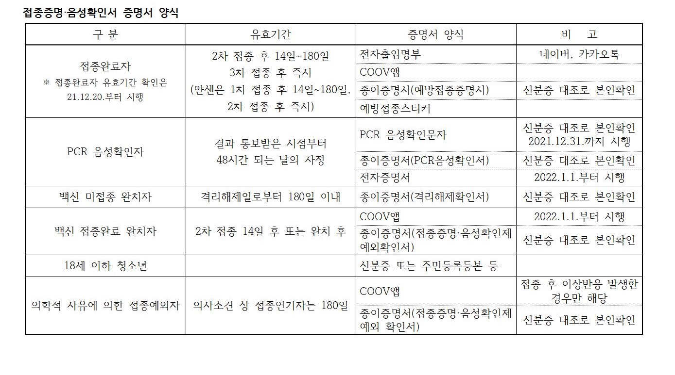 「단계적 일상회복 전환에 따른 사회적 거리두기(1차 개편)」에 따라 2021.12.13.(월) 부터 별도 고시 전까지 봉산문화회관은 접종증명·음성확인제(방역패스) 의무적용 시설로 지정되어 백신접종 완료자, PCR 음성확인자, 예외자인 경우만 입장 및 이용 가능하오니 아래의 증명서 양식을 확인하셔서 회관 입장 부탁드립니다.