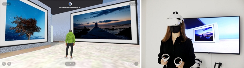 전시장에 들어서면 덩그러니 중심에 배치된 의자와 체험할 수 있는 오큘러스, 모니터 등의 영상미디어 기계가 존재할 뿐 실제 작품은 존재하지 않는다. 단지 기계장치의 구동으로 전시가 구현될 뿐이며 전시장 벽면의 대형 영상작품도 VR 체험으로 보여주는 3차원 공간 모두가 가상이고 실체가 없다. 풀어서 설명하자면 전시를 관람하기 위해 관람자가 의자에 앉았지만, 바라보는 영상 속 의자는 가상공간에 존재하는 의자이며 분명히 관람자가 전시장에 존재하고 있지만, 시각 속 공간을 작가가 만든 가상공간으로 이동시켜 실제와 같은 체험을 하는 프로세스로 설명할 수 있다. 그리고 또 하나의 공감 장치로 전시 오픈에 피아니스트 고희안을 초청해서 작가의 가상영상 6개 작품을 보며 즉흥연주를 하는 퍼포먼스를 봉산문화회관 가온홀에서 선보였다. 이전 전시에서 실험하였던 실시간 라이브 스트리밍의 작업의 연장선이지만 비대면이 아닌 대면 공연으로, 실존하는 영상이 아닌 가상의 영상으로 관객들이 ‘메타버스’에 대해 쉽고 친숙하며 몰입감 있도록 다가서는 실험을 시도했다. 이어 공연에서 녹취된 음악과 녹화된 영상을 전시장에 다시 구현하는 컬래버레이션(collaboration)을 보여주며 다채로운 공감을 유도한다. 그래서 벌써 현실이 된 가상의 세계에 대한 예술적 해법과 함께 다소 생경하게 느껴지는 관람객들에게 자유로운 상상 속 예술을 체험할 수 있도록 구성함으로 성큼 다가선 미래에 대한 예측과 변화를 사유할 수 있도록 다가선다. 아울러 점차 소실된 한정적인 공간을 대신하게 될 내적 새로운 공간인 가상의 세계가 현실에서 벗어날 수 있는 대안적 유토피아임을, 아울러 인간의 역할 축소에 대한 불안과 불확실성의 공포까지 다양한 예술적 담론을 형성케 하고 있다.